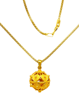 Svaki detalj je precizno izrađen: spiralni ornamenti, filigranski krugovi i zlatni sjaj čine ovaj privjesak posebnim, punim topline i tradicije.