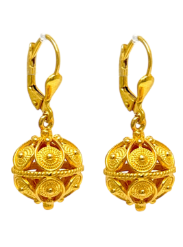 Set naušnica i privjeska izrađen od pravog srebra 925 i obložen kvalitetnom pozlatom, dizajniran je po uzoru na tradicionalne motive koje su stoljećima nosile žene na našim prostorima.Svaki detalj je precizno izrađen: spiralni ornamenti, filigranski krugovi i zlatni sjaj čine ovaj set posebnim, punim topline i tradicije.